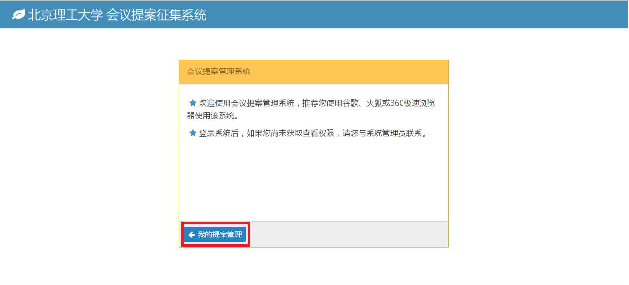进入该系统并使用统一身份认证平台登录后,可点击“我的提案管理”进入详细列表。非限定会议代表将不具有系统权限。