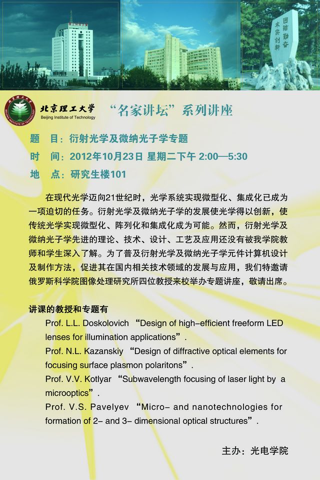 > 10月23日光电学院学术讲座预告