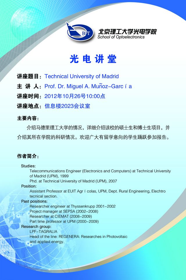10月26日光电学院学术讲座预告