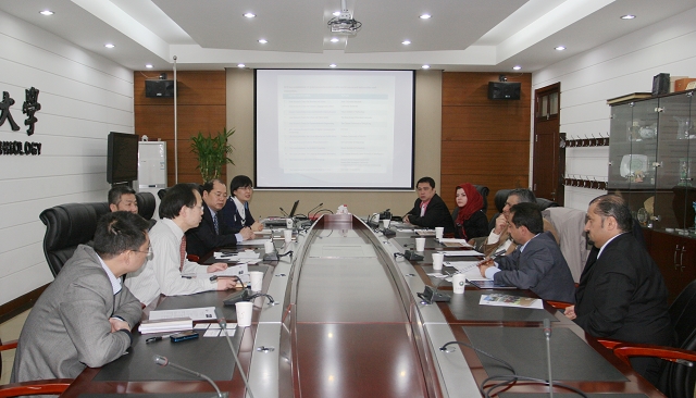 双方就成立联合研究中心、访问学者等议题进行探讨。计算机学院副院长牛振东和管理学院院长助理颜志军分别向代表团介绍了学院情况。
