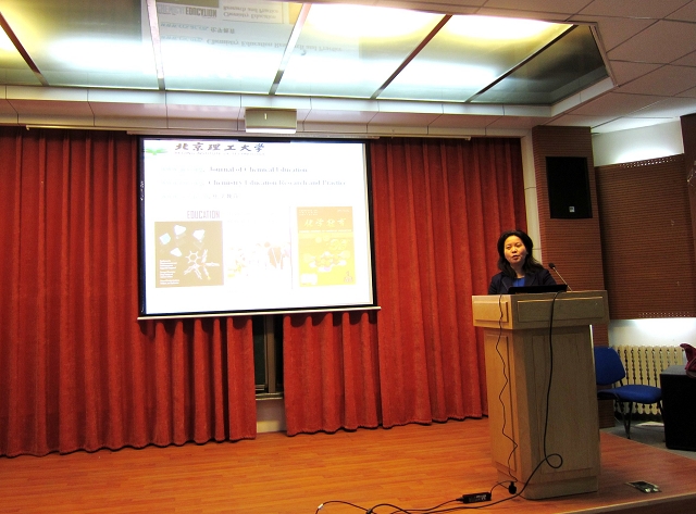 李晖教授从2011年举办的国际化学年引出此次专业导论的主要内容。首先她从人们日常生活中的衣食住行四方面阐述了人类社会、文明的进步与化学之间紧密的联系。然后提出知识交叉与融合对化学研究的重要性。她结合当前化学国际背景,及国际化学年的闭幕式所见所闻所感,对当前中国化学的各个方面的现状及发展前景做出了详细的描述,并指出本科生在学好课本知识的同时还要开阔自己的视野,她希望同学们能够好好利用现在的时间,多涉猎各方面的知识,充实武装自己,也表达了她对beat365英国官方网站化学专业学生的美好祝愿。