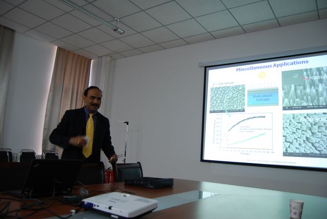 2012年4月12日上午,美国密歇根大学Pravansu S. Mohanty教授访问北理工材料学院,并在材料学院报告厅做了题为“In-situ Plasma Synthesis and Deposition of Energy Storage Devices”的学术报告。材料学院材料加工系主任马壮副教授主持了会议,与会老师包括材料学院副院长曹传宝教授、王扬卫副教授、宁先进副教授、程焕武副教授、王迎春副教授、陈为为副教授,另外材料学院相关专业研究生也聆听了此次学术报告。