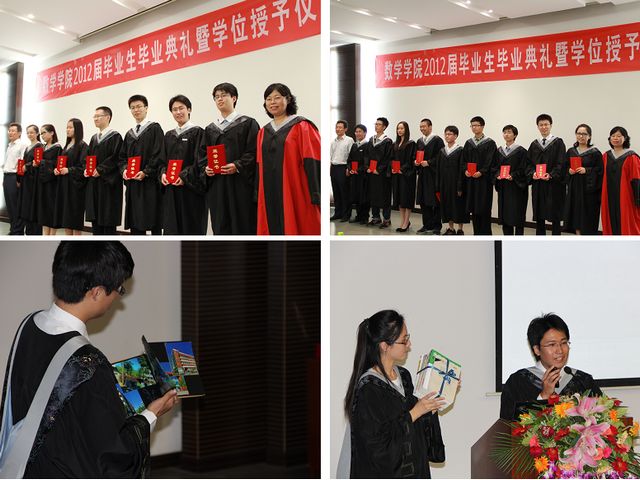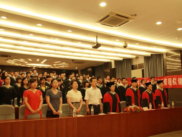 6月19日上午9:00,数学学院2012届毕业典礼暨学位授予仪式在研究生楼102教室隆重举行,数学学院领导、教师代表以及辅导员出席,2008级全体毕业生以及部分家长和亲友代表参加了毕业典礼。带着梦想与不舍,带着感恩与兴奋,毕业典礼伴随着国歌,缓缓的拉开序幕。