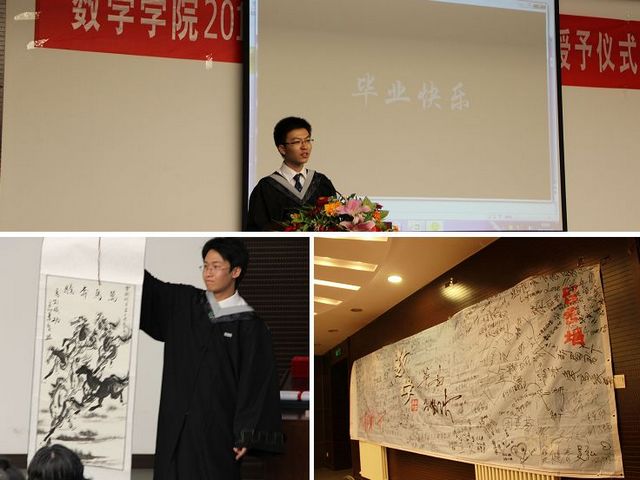 本科毕业生代表钱振祯同学发言,回忆了我们大学四年的同窗情,感谢学院培育之恩,表达毕业生共同的心愿,而且08级全体同学也为学院送上了毕业生精心准备的画卷和毕业墙,表达了所有毕业生对学院的感激之情。