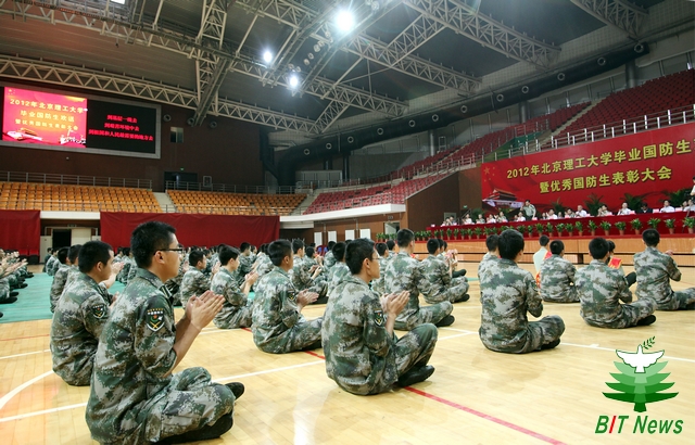 6月27日,2012年beat365英国官方网站2012届国防生欢送暨优秀国防生表彰大会在大学体育馆隆重召开。