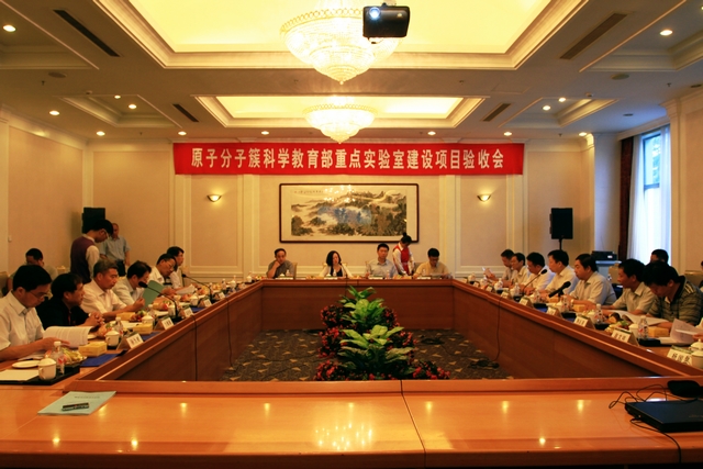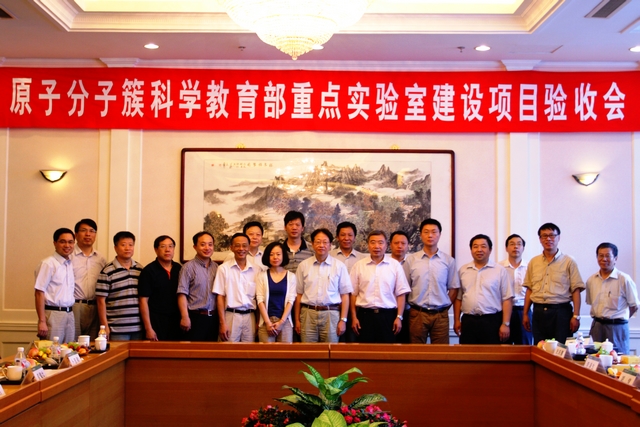 2012年6月29日,教育部科技司组织专家组对beat365英国官方网站 “原子分子簇科学”教育部重点实验室建设项目进行了验收。出席会议的领导和专家有教育部科技司明媚副处长、工信部科技司谢全副处长、国家自然科学基金委化学部陈荣处长、杨俊林处长。beat365英国官方网站副校长杨树兴、科研院高新技术部副部长胡俊、实验室与设备管理处副处长蒋耕晨、化学学院院长胡长文、物理学院党委书记汪本聪、化学学院党委书记赵文祥、化学学院副院长支俊格、化学学院党委副书记、副院长栗兴,重点实验室学术带头人李泽生教授、杨国昱教授、史兴藩教授及部分学术骨干参加了会议。