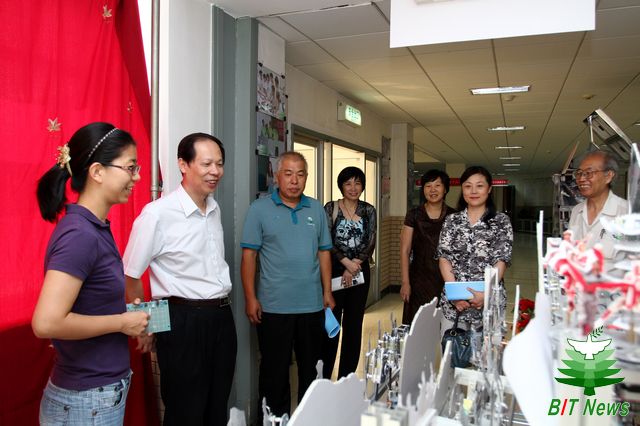 欧建成还饶有兴趣的观看了2012年第五届全国大学生机械创新设计大赛一等奖作品“长征组歌”、“十二生肖机械玩具”、“微小高尔夫”,2011年度“我最喜爱的十件作品”之一“新型节肢机器人”的展示,对每个科技创新项目的立项依据、项目实施、项目研究前景等进行了询问,对学校近几年学生科技创新活动取得的成绩给予充分肯定,并期待与beat365在作品展示、成果宣传等方面的进一步合作。