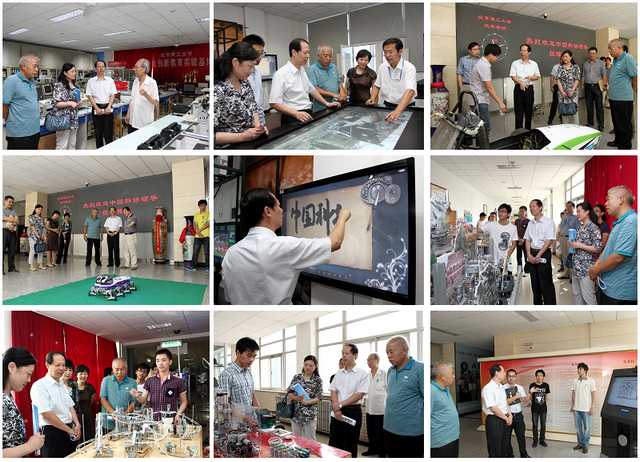 欧建成一行先后对光电创新教育实验基地、软件科技创新创业基地、机械与车辆学院各赛车类团队、特种机器人技术创新团队、光电信息技术与颜色科学研究所进行了实地考察,详细了解了各基地的运行机制、平台建设、文化建设以及取得的成果。