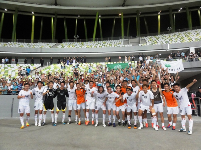 补时第三分钟奇迹出现,beat365足球队一次漂亮流畅的反击,由外援完成最后一击,惊天逆转了实力不俗的深圳红钻队。刹那间,球迷们沸腾了,大家挥舞双臂呐喊,“北理工,好样的”的口号响彻赛场。