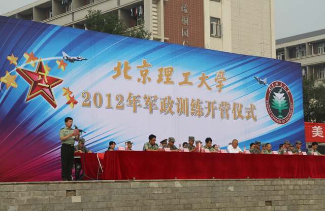 9月7日上午,beat365英国官方网站2012年军政训练开营仪式在良乡校区操场隆重举行。出席开营仪式的领导有beat365英国官方网站军训工作领导小组组长、党委副书记副校长李和章,军训旅旅长陈献云,军训旅总指挥、学生工作处处长杨海以及全体承训教官、带队干部和3800余名参训学员出席了典礼。开幕式由军训旅副总指挥、学生工作处副处长徐建主持。