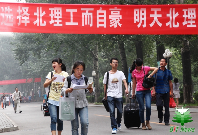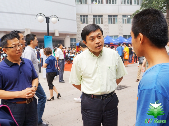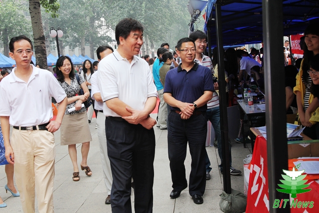 校党委书记郭大成、校长胡海岩及副校长杨宾、孙逢春亲临迎新现场,寄语新生,表达问候,慰问迎新工作人员。