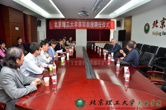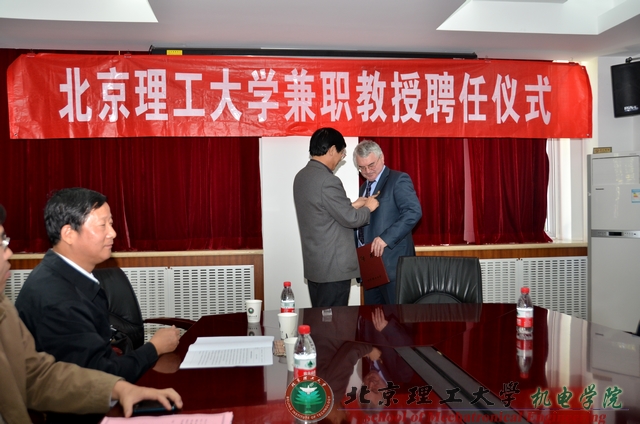 机电学院院长焦清介教授代表学校向Sinditskii教授颁发了聘书。聘任仪式由机电学院能源与动力工程系主任张建国教授主持。受聘仪式上,机电学院张同来教授介绍了Sinditskii教授的基本情况,以及在学术、科研等方面的成果。Sinditskii教授一直从事含能材料合成及燃烧性能等方面的研究,取得许多重要研究成果。