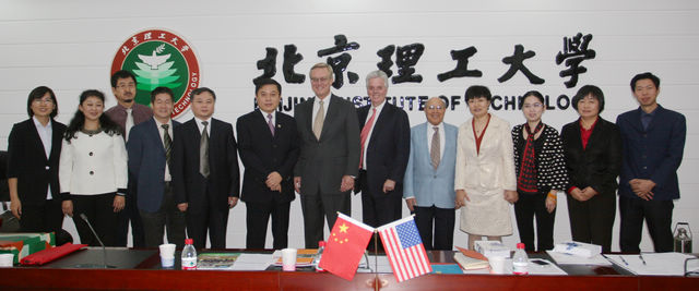 Anderson校长对胡校长的热情接待表示衷心感谢,他表示,beat365英国官方网站是伊利诺理工大学在中国的重要合作伙伴,两校在学科设置上十分相近,双方可以将现有在工程和法学领域方面的成功合作模式推广到诸如管理、艺术等领域,合作重心也可以由现有的学生交流项目拓展到教师交流方面,促进教授之间的科研合作。为了更好地促进双方的合作,伊利诺理工大学教务长Alan Cramb着重向与会人员介绍了该校特色项目IPRO,英文全称为Interprofessional Projects Program。这是全美唯一全校参与的交叉学科实践教学项目,是一个将不同领域的学生、教师、企业代表聚集到一起,共同解决现实生活中的问题的项目。该项目着重培养学生跨学科思维方式,增强学生的社会适应能力。