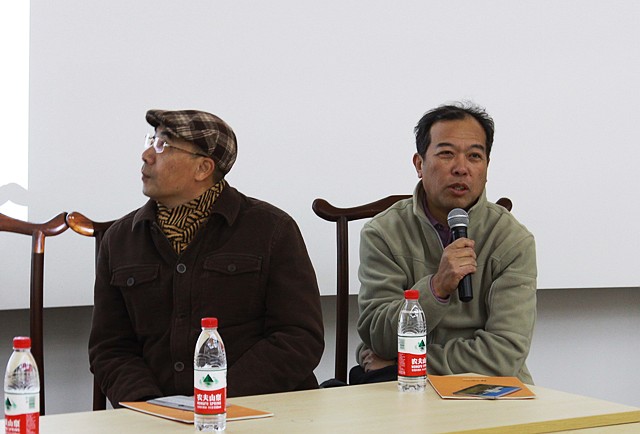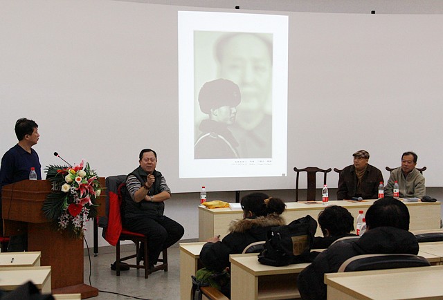 沙龙上,摄影大师们结合本届摄影展深入探讨人文摄影与社会发展、时代变迁的关联。首先,刘景行(右)指出摄影的三层境界——照片基本要素、照片故事情节、照片传达情绪,赋予摄影以深刻的内涵和人文关怀。李学峰(左)根据自己丰富的摄影实践介绍了水下摄影和大画幅摄影的特点,并对此次影展部分照片进行了精彩点评。段炼老师则立足教学、结合摄影经历鼓励同学要积极创新、敢于突破。