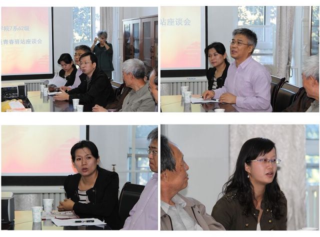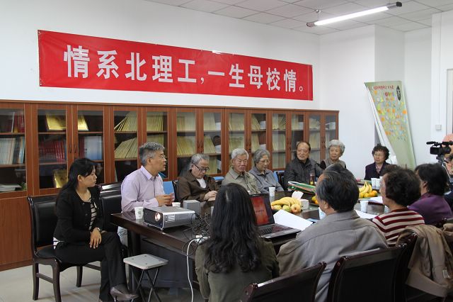 随后,校友们观看了由王曼丽校友制作的幻灯片:《那时的我们》,一张张珍贵的老照片,一串串充满深情的真心话,让在座的老校友、老教师们仿佛又回到了当年北京工业学院的那个年代,又回到了那个充满激情的岁月。随后进行了向老教师献花和座谈的活动,这次活动邀请到了老七系的原副主任王鸿志老师、老七系葛伟亮老师、张也影老师、李妙成老师和原基础部张云鹤老师。老校友们纷纷表示,这些老师既是他们在学术上的领路人,更是他们在人生道路上的引导者,当回忆起当年老教师们授课时的场景,老校友们都神采飞扬,将现场气氛推向了高潮。