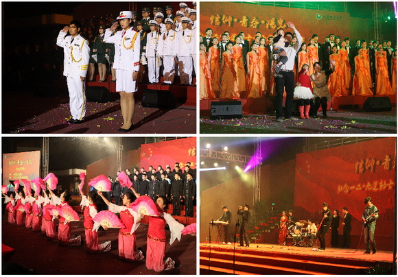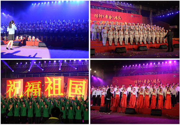 歌咏比赛在情景舞蹈《国民革命歌》中开场。比赛中,来自14支合唱队的千余名师生按照历史脉络,先后演唱了《八月桂花遍地开》、《四渡赤水》、《在灿烂的阳光下》、《年轻的朋友来相会》、《走向复兴》等脍炙人口的经典歌曲。