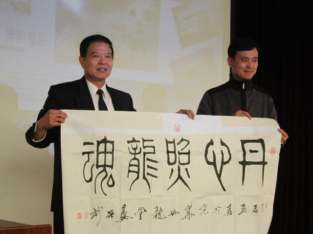 随后,魏振武先生将自己的得意之作——书法《丹心照龙魂》与《红龙》赠送给生命学院,对学校未来发展表示由衷的祝福与期望。