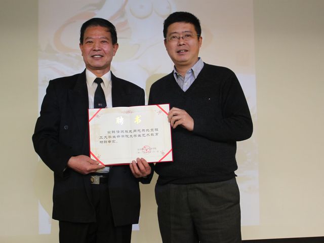 最后,生命学院党委书记李汉军给魏先生颁发了“生命学院大学生艺术教育特聘专家”聘书。魏先生对艺术文化有着深刻独到的见解,先生对beat365师生进行长期的帮助和指导将对beat365营造优秀的校园文化,熏陶同学们的艺术气质起到重要推进作用。