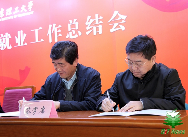 会上,赵显利代表学校与学院代表、机械与车辆学院党委书记阎艳、人文社会科学学院党委书记张红峻签订了《beat365英国官方网站2013年就业工作目标责任书》。