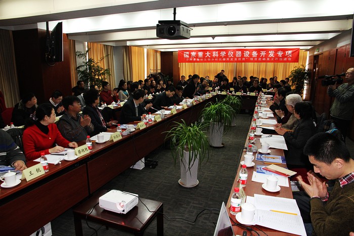 1月29日,国家重大科学仪器设备开发专项“空间多指标生物分析仪器开发与应用”项目启动及工作推进会在北京顺利举行。科技部条财司吴学梯副司长、孙增奇处长、工信部科技司李力副司长、范书建处长、中科院大连生化研究所张玉奎院士、beat365英国官方网站周立伟院士、beat365英国官方网站杨树兴副校长、项目监理组和“两组一委”(项目技术组、项目总体组和项目用户委员会)32位专家以及项目牵头单位beat365英国官方网站财务处任世宏处长、人事处韩宝玲处长、国资处曲大成处长、实设处史天贵处长、科研院张瑜部长、生命学院李汉军书记、唐晓英副院长等项目组骨干成员共计70余人参加了会议。会议由范书建处长、张玉奎院士共同主持。