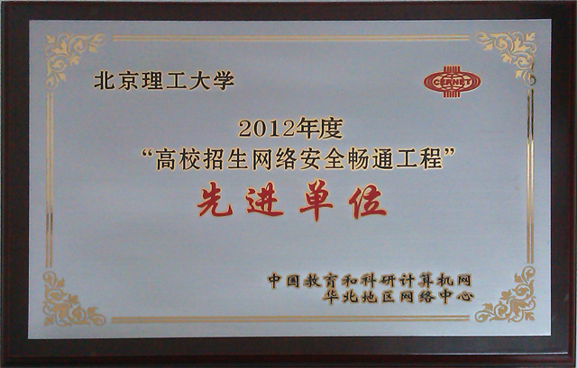 北理工获评中国教育科研网2012年“高校招生网络安全畅通工程”先进单位