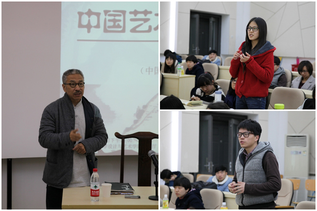 梅先生从自己的切身体验、创作实践与思考出发,对中西方艺术与文化进行了比较,还涉及到太极拳、中医、阴阳五行等领域,并列举了齐白石、黄宾虹、李可染等近现代名家、大家的作品,一一进行了品赏。梅先生娓娓道来,对于讲座主题丰富、深入的讲解,博得了在场师生的热烈掌声。之后,同学们与梅先生进行了问答互动,针对自己的学习情况与感受,以及一些具有较强现实意义的艺术问题,与梅先生进行了广泛的交流。