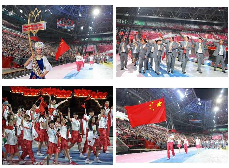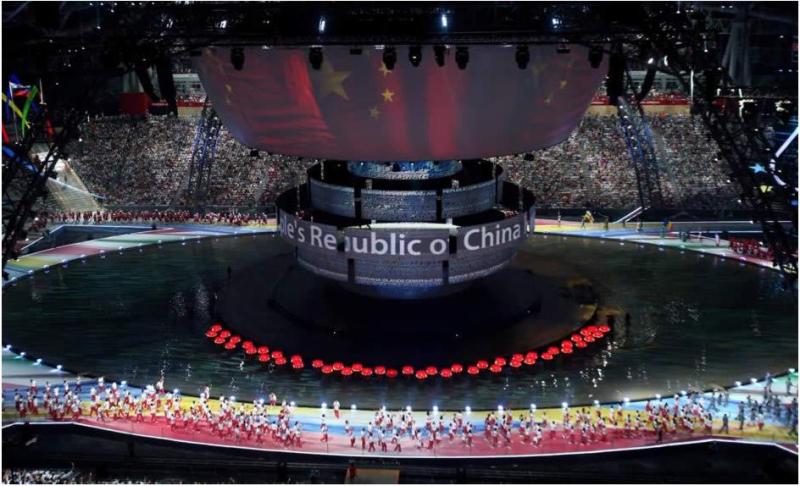 本次俄罗斯喀山大运会的开幕式别具特色,整个喀山体育场被打造成了一片湖泊,主舞台似湖中小岛,碗状的巨型电子屏幕自穹顶垂下。俄罗斯总统普京在开幕式致辞说:“希望所有客人有回家的感觉!"。而在中国代表团入场时,来自北理工的球员卢斌作为中国男足队长担任此次中国大运代表团的旗手,在开幕式结束后,卢斌在个人微博上表示:“环顾了其他国家代表队旗手,他们都是把国旗插在腰中的旗拖里走过会场的。入场的那一瞬间我就告诉自己,一定要双手高举五星红旗,让鲜艳的五星红旗飘扬在世界的赛场上,完美的展现在世界人民的眼中,我做到了!”。