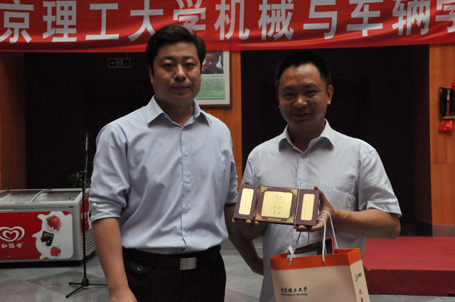 机械与车辆学院党委副书记副院长范文辉向汶川青年活动中心赠送纪念品