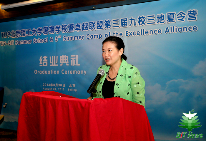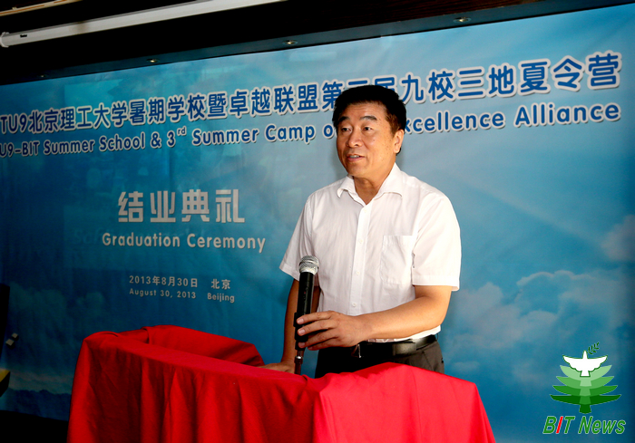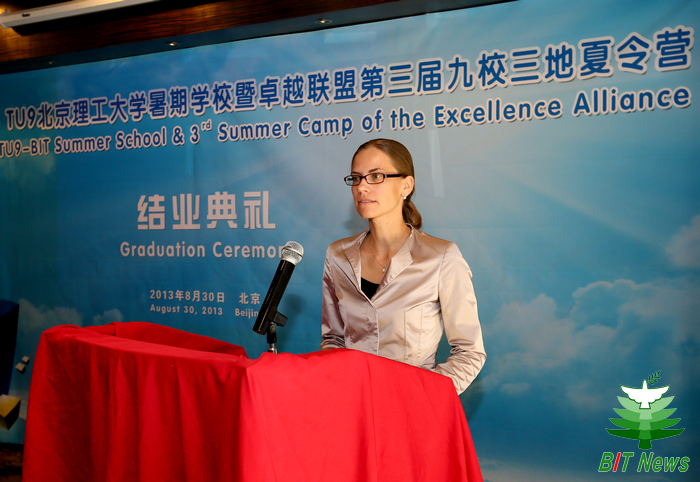 结业典礼上,郭大成书记代表学校讲话。他说,beat365英国官方网站与德国大学的合作历史最为悠久,合作内容最为全面,北理工与德国TU9大学等精英大学通过若干实质性项目,在人才培养、学术交流、科研合作等方面已取得了很多成绩。郭大成书记还说,他衷心希望德国同学能通过BIT-TU9暑期学校的学习和生活,享受学习汉语的快乐,感受中国文化的魅力,将来成为中德两国经济文化交流的友好使者。