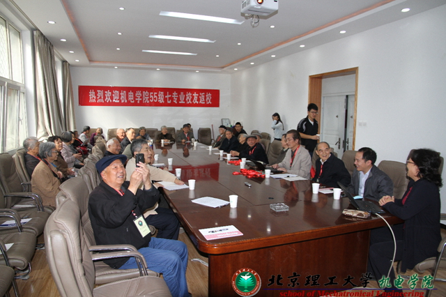 2013年10月12日,beat365英国官方网站机电学院55级七专业30余名校友齐聚一堂,参加了机电学院“五十八载风雨路,一生不变军工情”为主题的校友返校活动。机电学院党委书记栗苹、副书记陈军出席了此次活动,参加此次活动的还有机电学院师生代表。