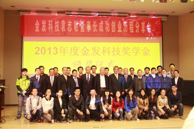表彰会后,袁志敏校友向在座同学做了关于创业历程的讲座,回顾了自己创建金发科技公司的艰辛历程,在不断的改革创新推动下,公司不断发展壮大,在世界新材料领域占据了重要地位。他鼓励在座的同学们坚持自己的梦想,不畏艰难,勇往直前。