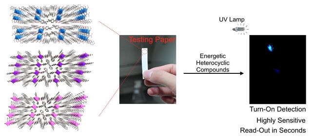 编辑:化学学院 张锋 阅读次数: 针对目前日趋严峻的国际、国内安全形势,亟需开发一种能够快速、灵敏、便捷检测爆炸物的方法。其中,五元杂化化合物作为一类非常重要的高能量密度化合物,具有高爆温、良好的氧平衡和对摩擦和冲击的低灵敏度等优点,被广泛应用于炸药、推进剂等军用以及民用领域。然而由于五元杂环高能量密度化合物种类繁多(如三唑、四唑、偶氮呋咱及其衍生物等),具有迥异的分子结构和轨道能量,目前并没有有效的方法能够快速检测这类化合物。