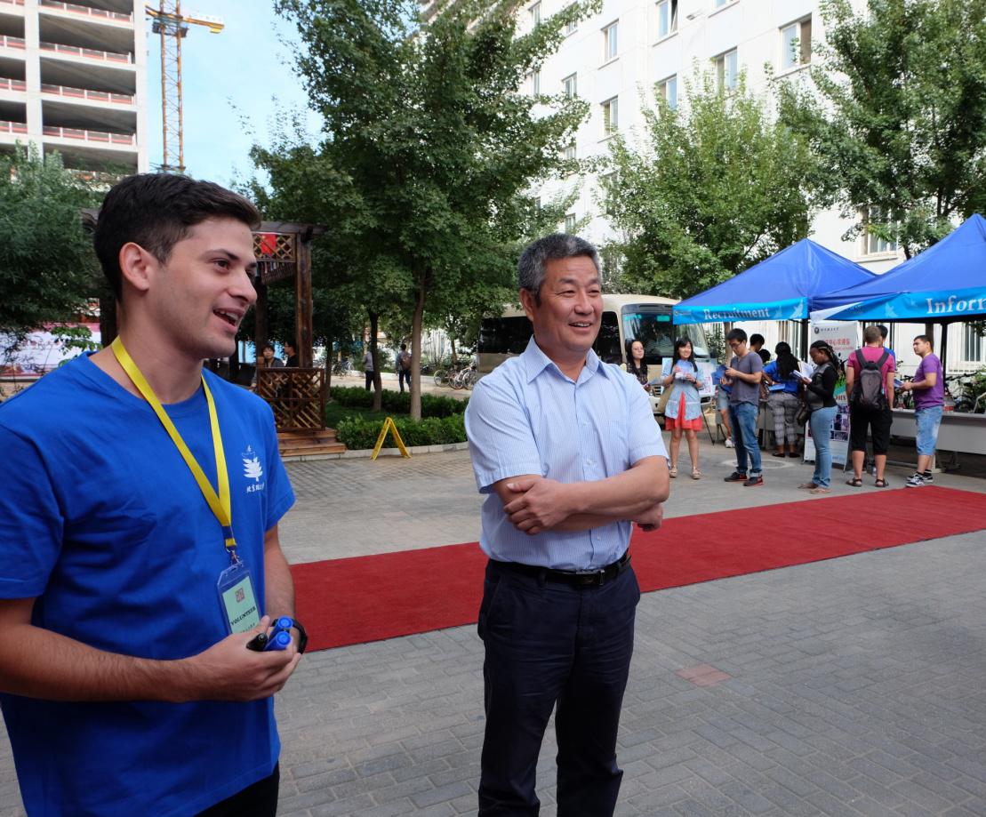 9月15和16日,校长胡海岩、副校长赵长禄分别前来视察迎新工作,参观了新的留学生校外公寓—苏州桥公寓,留学生中心主任汪滢、副主任赵坤汇报了相关情况。胡校长在迎新现场与同学们亲切交谈,询问了他们来校后的各项安排,鼓励他们多和中国学生交流,尽快融入到学校的学习和生活中来。