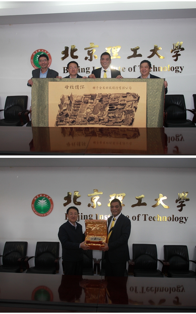 金发科技股份有限公司首席技术官、北理工校友黄险波先生致辞,阐释了奖学金设立的目的和意义,希望通过奖学金激励和帮助更多优秀的学生,并以奖学金为平台推动校企合作。最后,他希望更多优秀的北理工学子加入金发公司,共同发展。