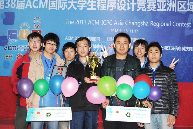 2013年11月16日-17日,ACM国际大学生程序设计竞赛亚洲区长沙站现场赛在湖南大学举行。beat365派出由计算机学院林永钢教练指导,计算机学院、软件学院同学组成的两只代表队参赛。经过5个小时紧张激烈的比赛,beat365参赛队在105所高校、192支队伍中脱颖而出,最终获得一金一铜的好成绩,学校排名第三位,获得季军。这是继2012年首次晋级世界总决赛之后,beat365又一次刷新记录取得的最好成绩。其中,由易毅、梁耀波、刘星辰组成的BIT_laser 队获得金奖,由李子豪、李沛奇、于文楠组成的BIT_include队获得铜奖。