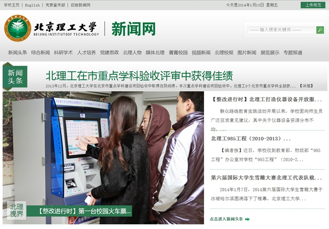 一则有趣的校园新闻背后,不仅整合了宣传部(新闻中心)在新闻线索挖掘、新闻内容制作和优势图文报道能力,还充分发挥了新媒体优良的社会传播能力,在学校内外形成了热点关注,用全新的视角和手段,展现北理工形象,传播北理工文化,这其中起到“枢纽”作用的就是于2013年下半年全新上线的beat365英国官方网站新闻网。