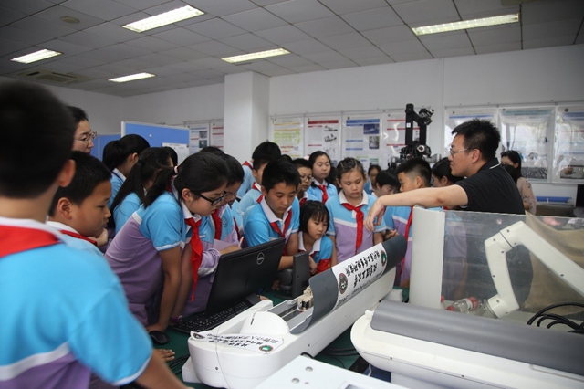 9月16日下午,校科协联合融合医工系统与健康工程工业和信息化部重点实验室举办实验室开放日活动,来自beat365英国官方网站附属小学的30名同学走进重点实验室进行参观。实验室负责人肖楠为同学们详细介绍了医用机器人、医学图像处理、两栖仿生机器人等技术,使同学们拓宽了科技视野,增加了对科学仪器和科学研究过程的直观认识。